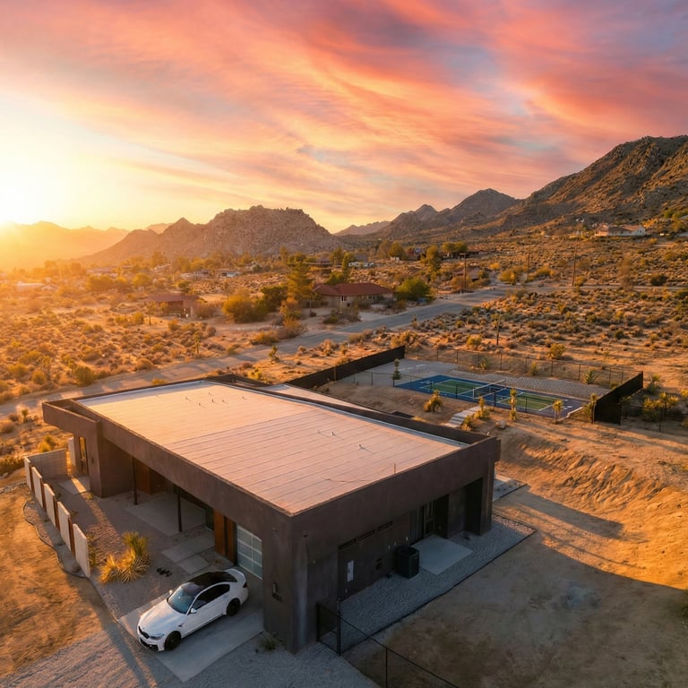 Welcome to Onaga Picklehouse - a luxury escape for those who appreciate sophistication, serenity, and sport. Set at 3,000+ feet in Joshua Tree’s most exclusive enclave, this designer-furnished estate offers sweeping desert/mountain views. With limited guest stays, the home is owner-maintained and cared for like a private residence. Enjoy a pro-level pickleball court, resort-style pool and spa, fire pit, and stargazing. Perfect for discerning travelers seeking an elevated experience.
